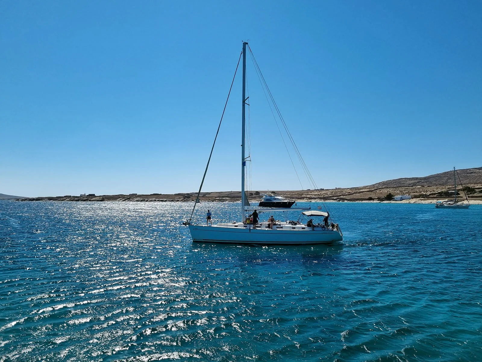 6 hour sail for up to fourteen passengers from Mathios Tavern, Tourlos Marina in Port Mykonos.
